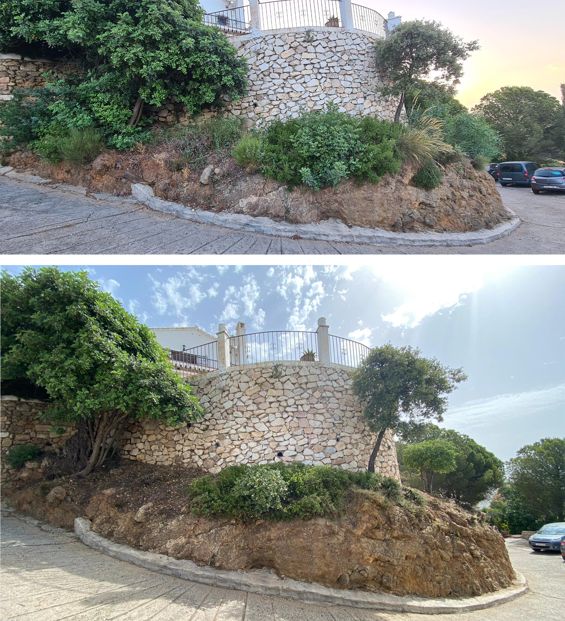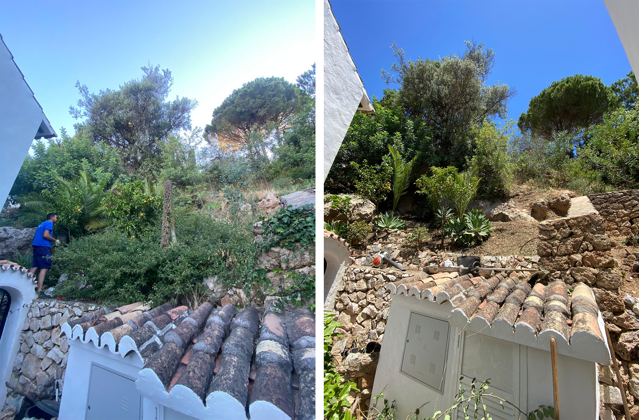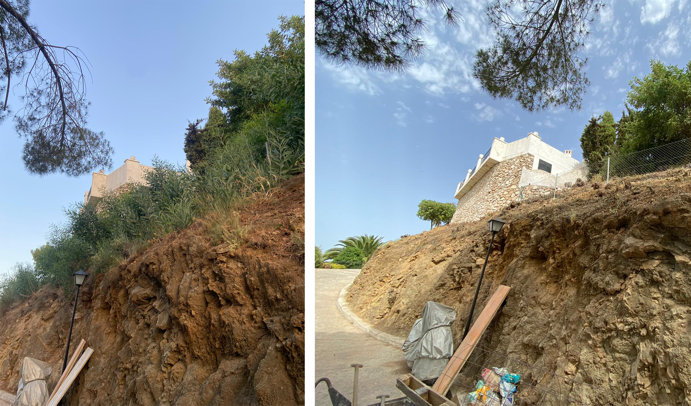 The before and after pictures show the clearing of scrub above Casa Pamela