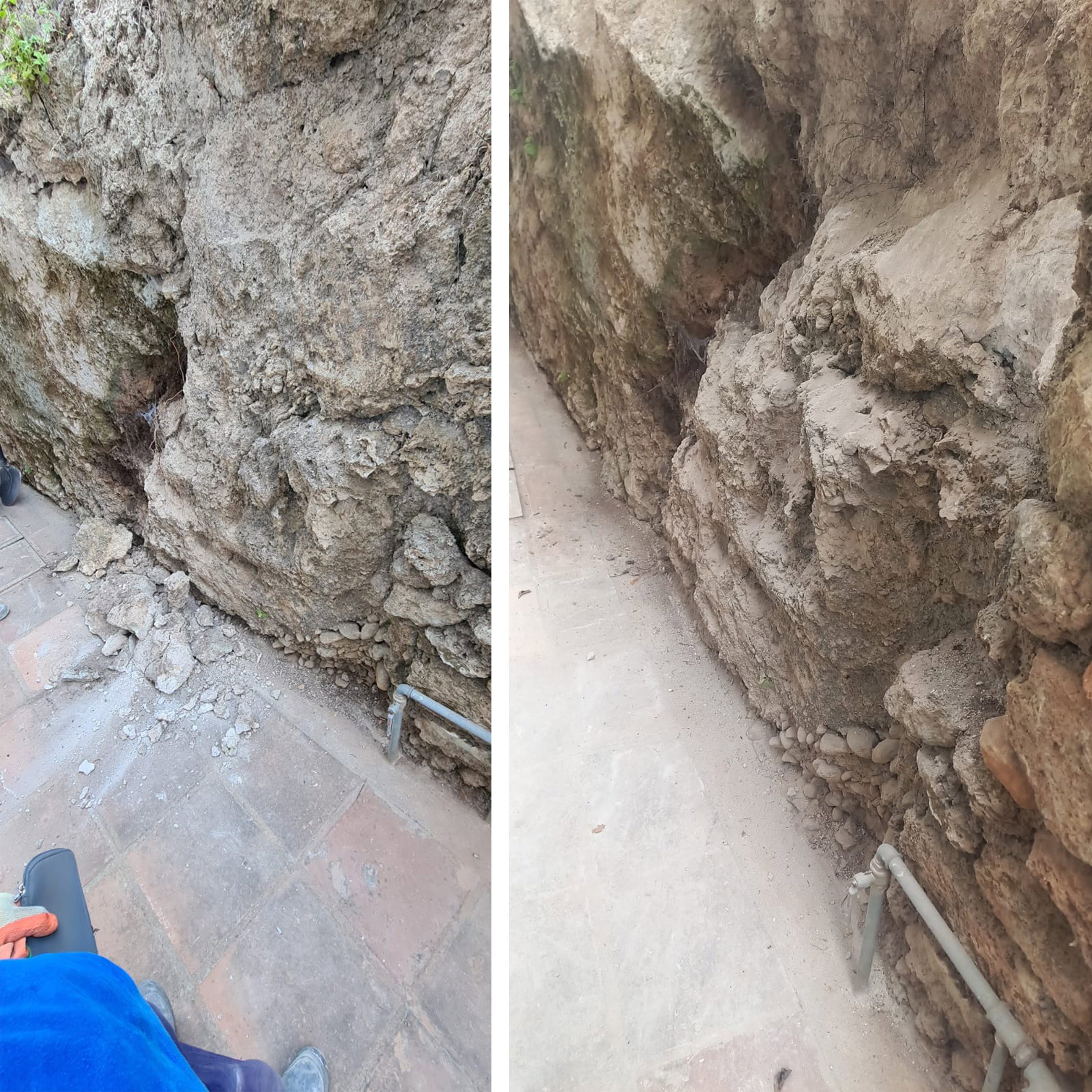 The maintenance team added some cement to "sure-up" one of the communal walls